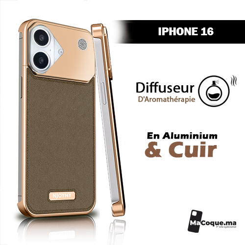 #Desert Titanium# Coque iPhone 16 normal en aluminium, Cuir & diffuseur de Parfum .