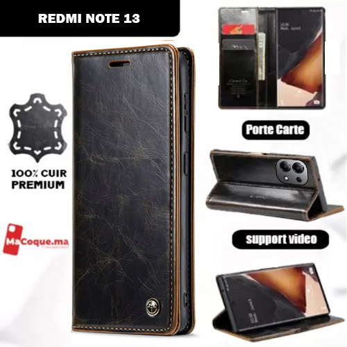 #Marron# 100% CUIR PREMUIM Etui Redmi Note 13 Portefeuille/Porte Carte / Support Video/PROTECTION 360°.
