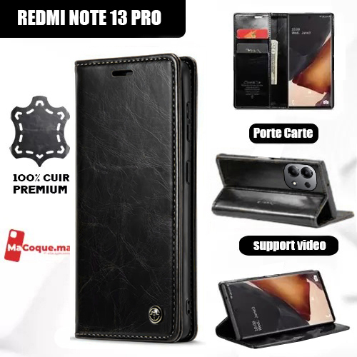 #Noir# 100% CUIR PREMUIM Etui Redmi Note 13 Pro Portefeuille/Porte Carte / Support Video/PROTECTION 360°.
