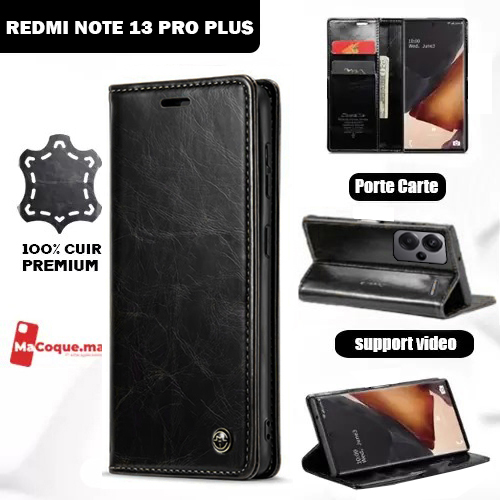 #Noir# 100% CUIR PREMUIM Etui Redmi Note 13 Pro Plus Portefeuille/Porte Carte / Support Video/PROTECTION 360°.