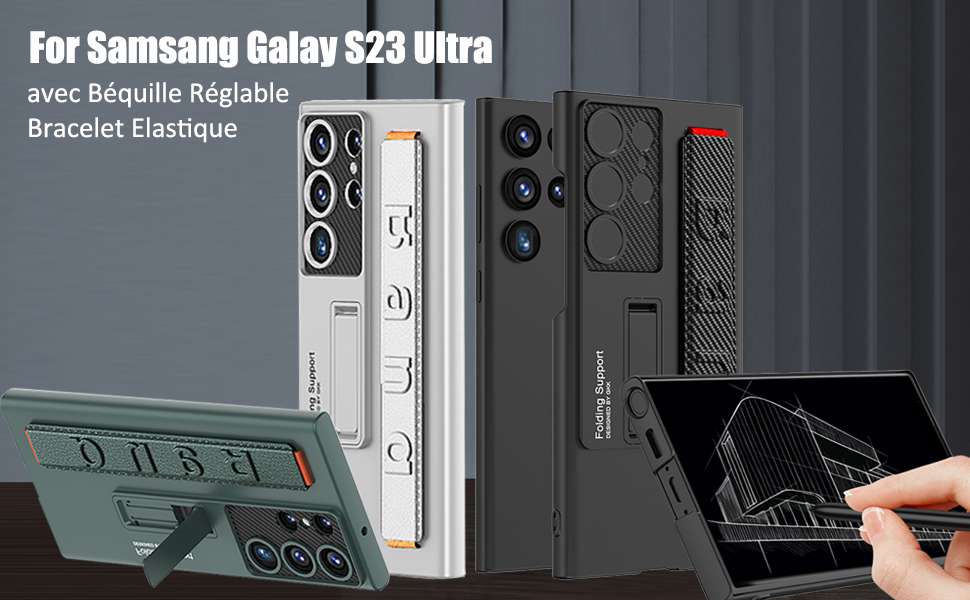 #Black# Coque Samsung S23 Ultra Luxury/Béquille Réglable/Bracelet Elastique UltraMince BAND